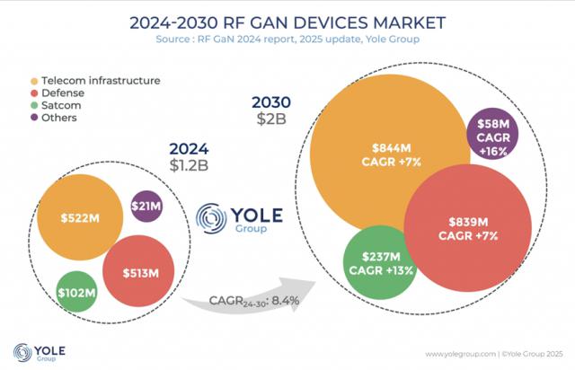 从频率角度来看,GaN 在 6 GHz 以下 ( FR1 ) 频段(与 LDMOS 竞争)和 FR3 ( 7-20 GHz ) 频段都展现出其重要性,其中集成密度和低寄生效应至关重要,也是正在进行的 6G 研究的核心。随着 6G 概念逐渐成型,强调每秒太比特的速度、亚毫秒级的延迟和人工智能驱动的网络优化,硅基氮化镓 ( GaN-on-Si ) 凭借其高频性能、可扩展性和不断提升的经济性,成为无线基础设施下一轮飞跃的有力竞争者。
